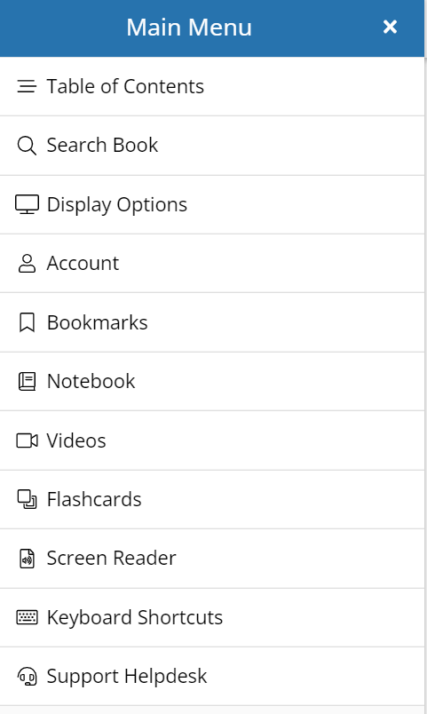 When selecting the Main Menu on the left-hand side, users will be able to select the Table of Contents.