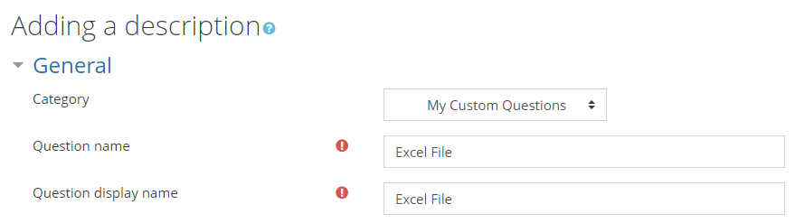 - Fill in a Question name (what you see in the Question Bank) and a Question display name (what Students see if applicable).