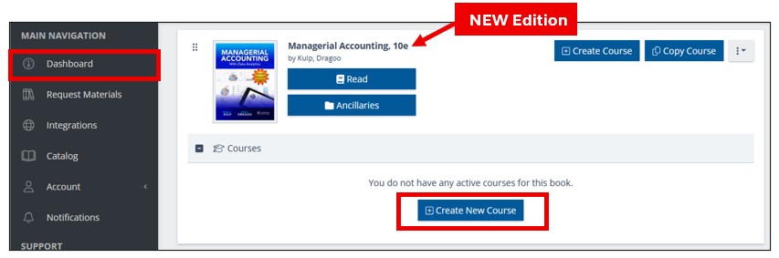 - Locate the New edition on the Dashboard. Click Create New Course.