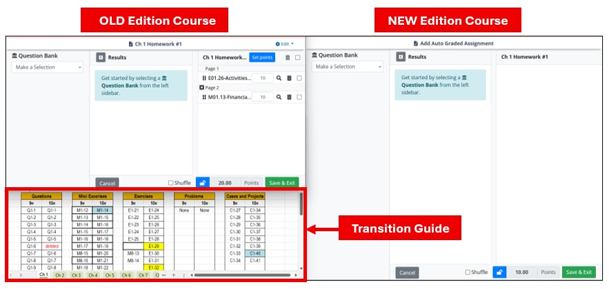 - Rebuild assignments in the New edition course using the Assignment Transition Guide.